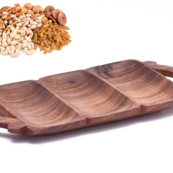Wooden Dry Fruit Tray with 3 Compartments, Serving Platter.