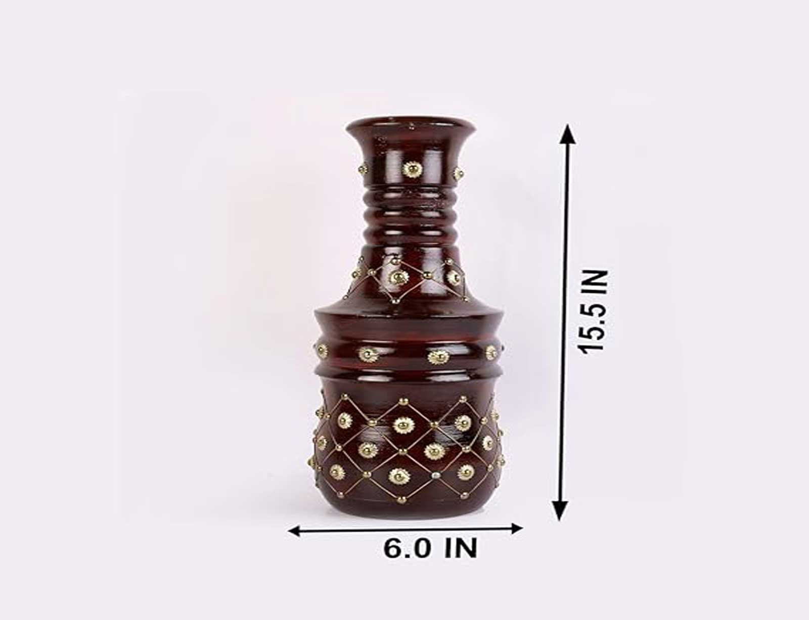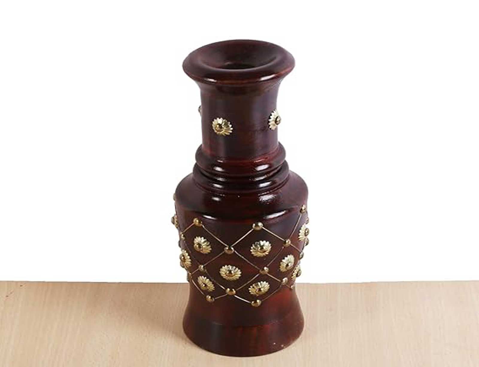 PREMIUM MATERIAL: Constructed from high-quality polished wood with brass inlay detailing, this decorative vase combines durability with timeless aesthetic appeal