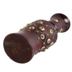 Decorative Flower Pot, Dark Brown with Brass Inlay, Wood, 15 Inch