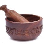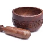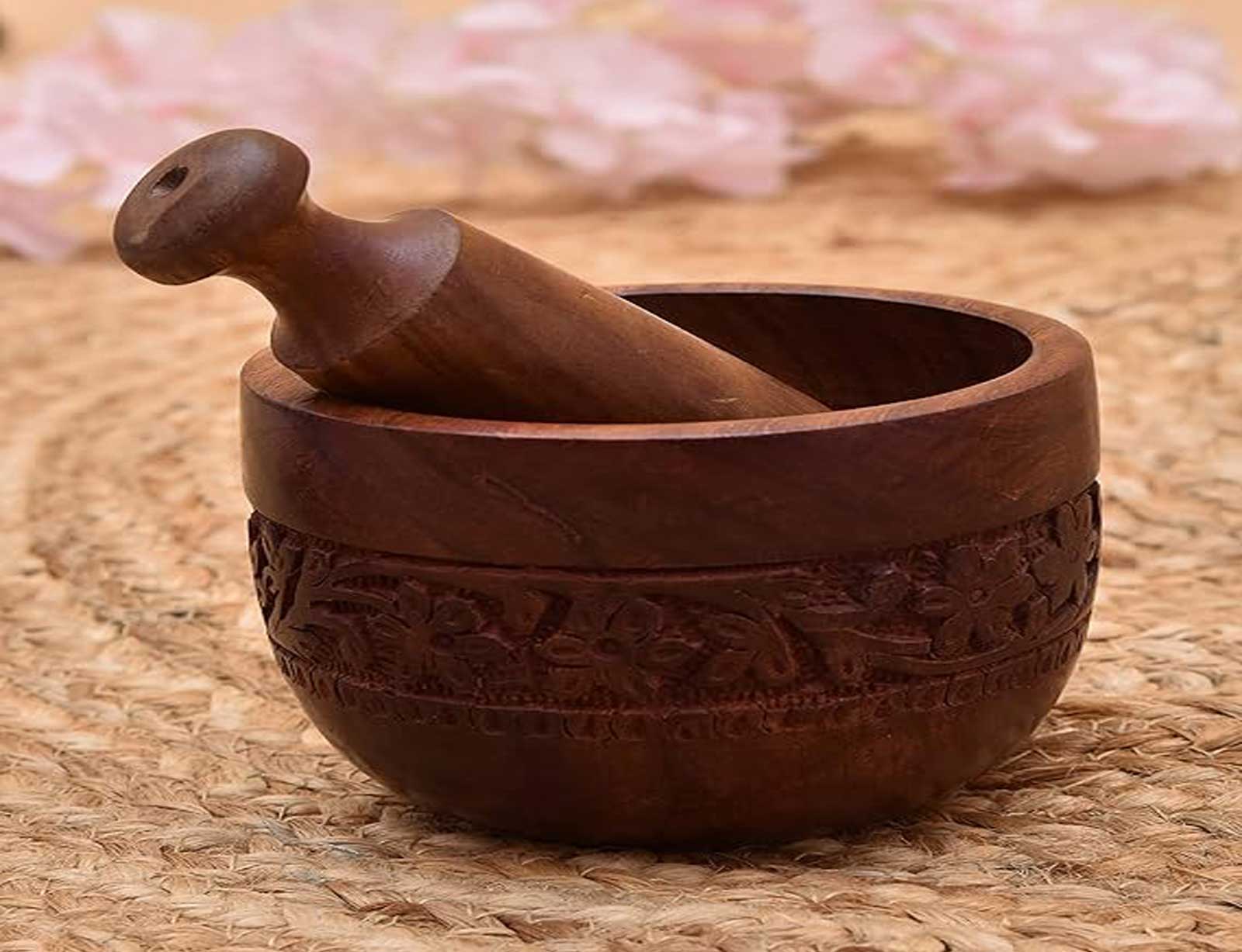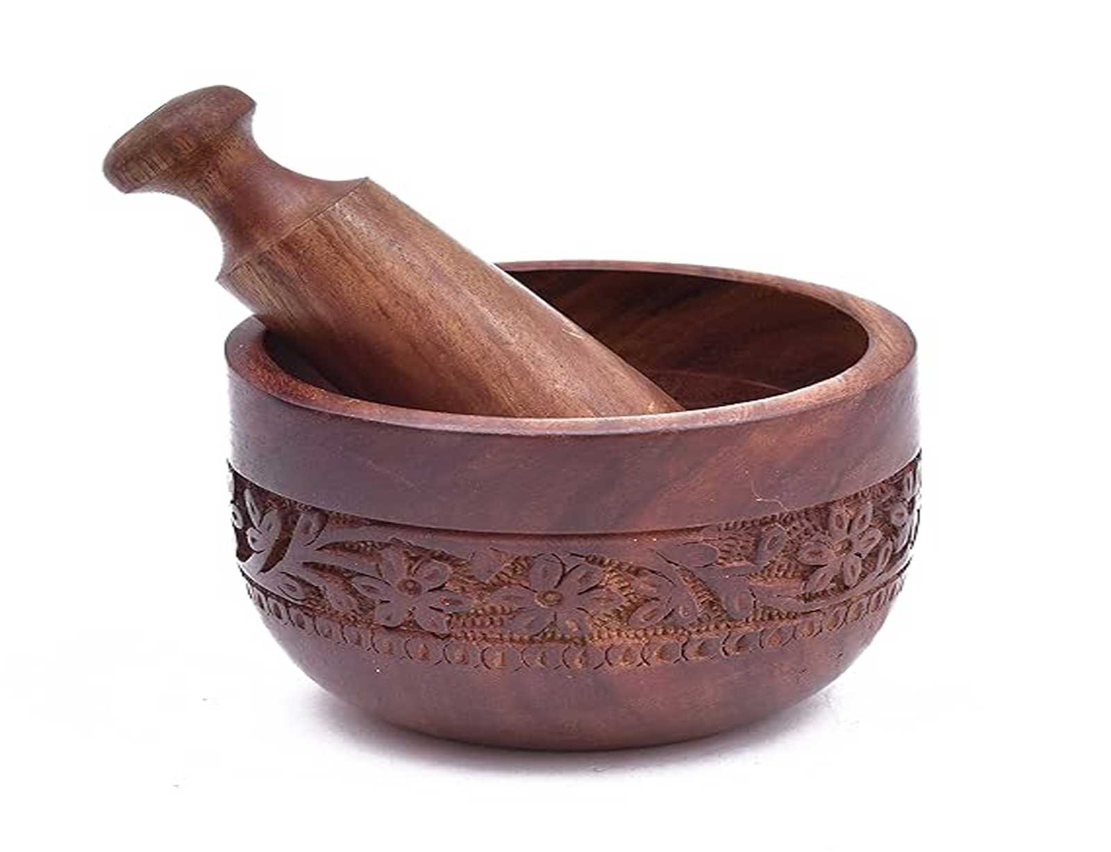 Brings Hand-crafted luxury to redefine your home decor & utility. A kitchen essential Mortar and Pestle made up of shiaham wood