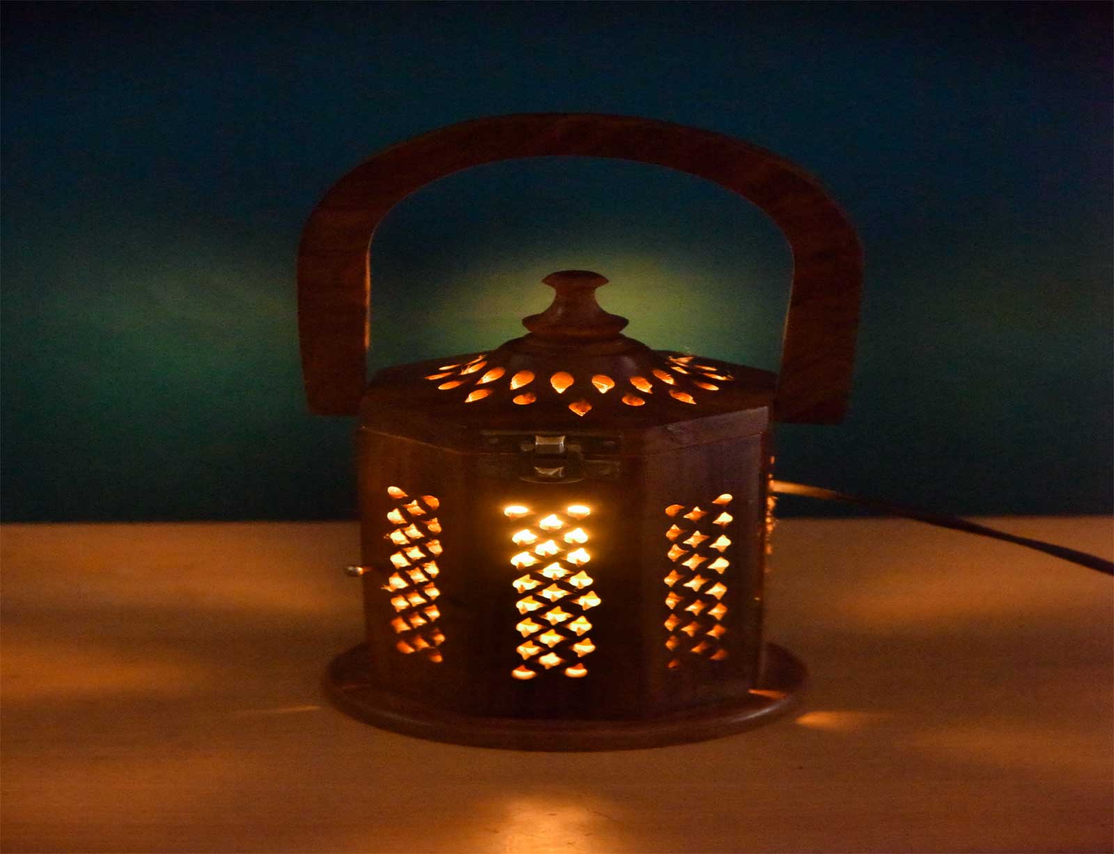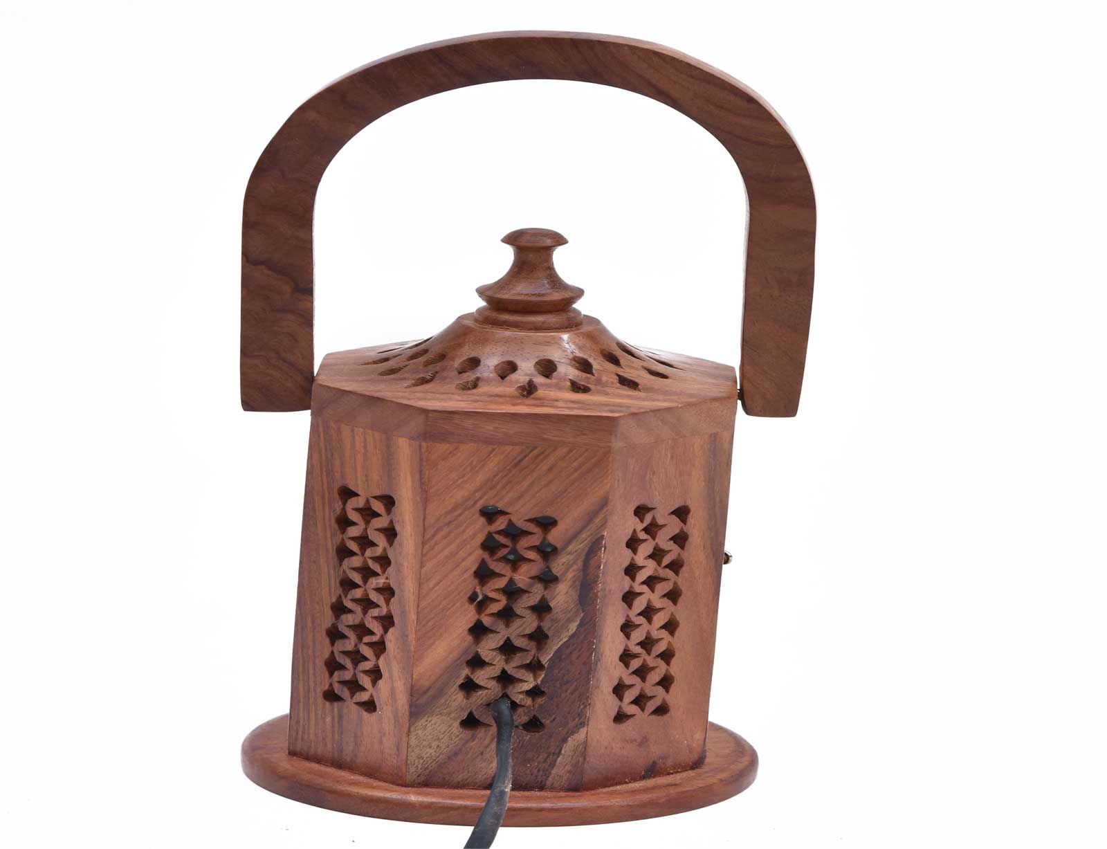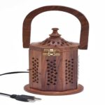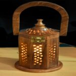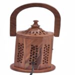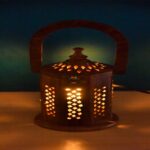 Be the first to review “Wooden Lamp with Carved Design, 8 Inch , Decorative Table Light with Handle and Brass Latch”